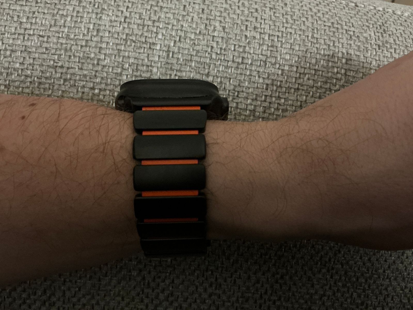It truly is a beautiful band, gorgeous unique design , the orange FKM it is a wonder indeed and really stands out, amazingly well thought and crafted Love it. Comfortable and light when worn