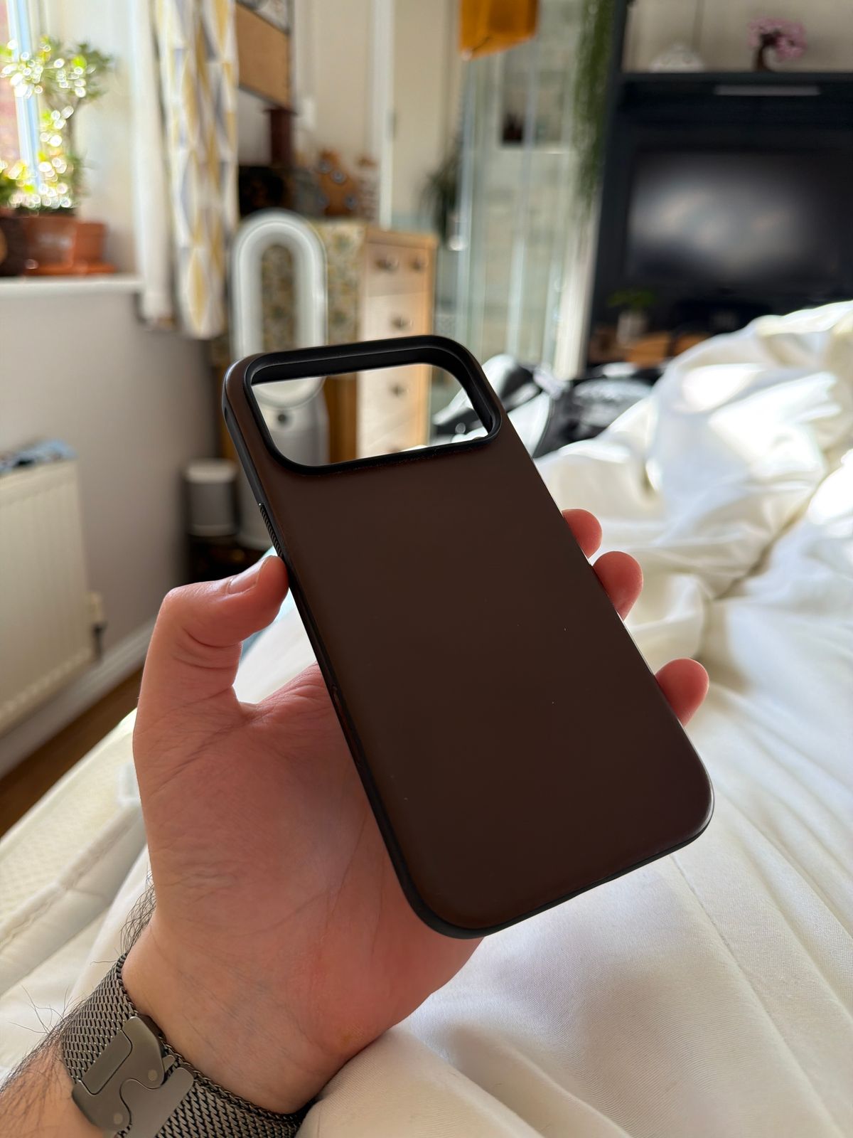 Had my eyes on this for a while. Would have liked it to have no markings due to the mag safe connection to my wallet, and it is a little scratch-prone, but that's what you get with leather (which is ethically sourced); I will have to get used to it, but that is a 'me' problem; it is decent enough. All this, while being slim and having no highly visible branding, is conveniently located in the back and on one side, which speaks for itself. Complements the set of my AirPods case and 'Find My' wallet well.