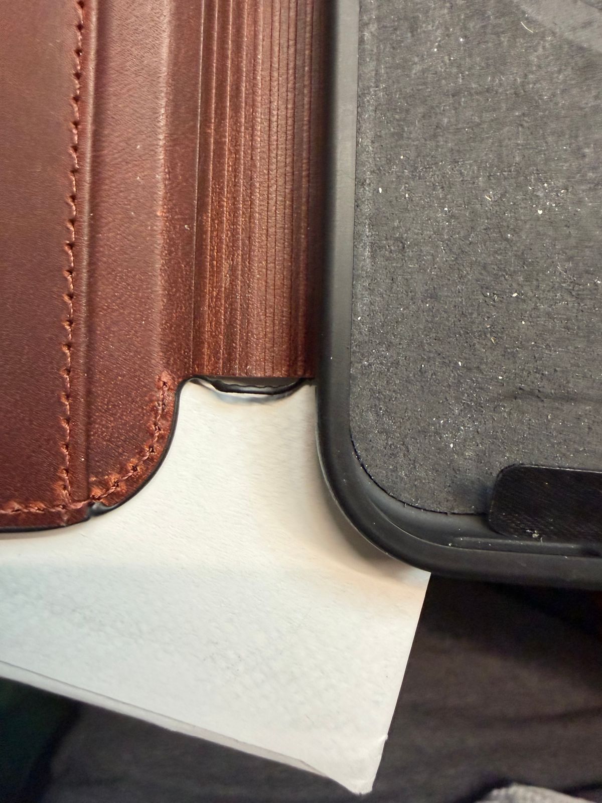 I had a trifold Nomad cover on my old phone and had a lot stuffed in it. I definitely wanted another Nomad for my new iPhone 17 pro but the bifold is really pushing my minimalist limits. I feel that it would help the design to actually build a small compartment for cards rather than just a slot which bulges. I have 4 regular cards in the top slots and 3 thin ones in the lower slot.