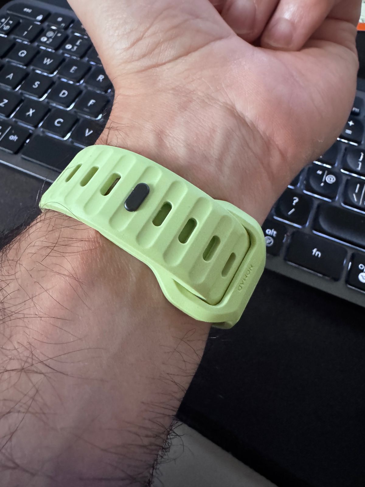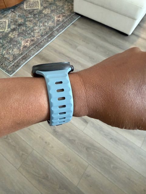 love the design and the color. The glow in the dark really pops out when illuminating. The fit wasn’t perfect where the clasps are that connect to the watch. Otherwise I love the band and plan to buy more!