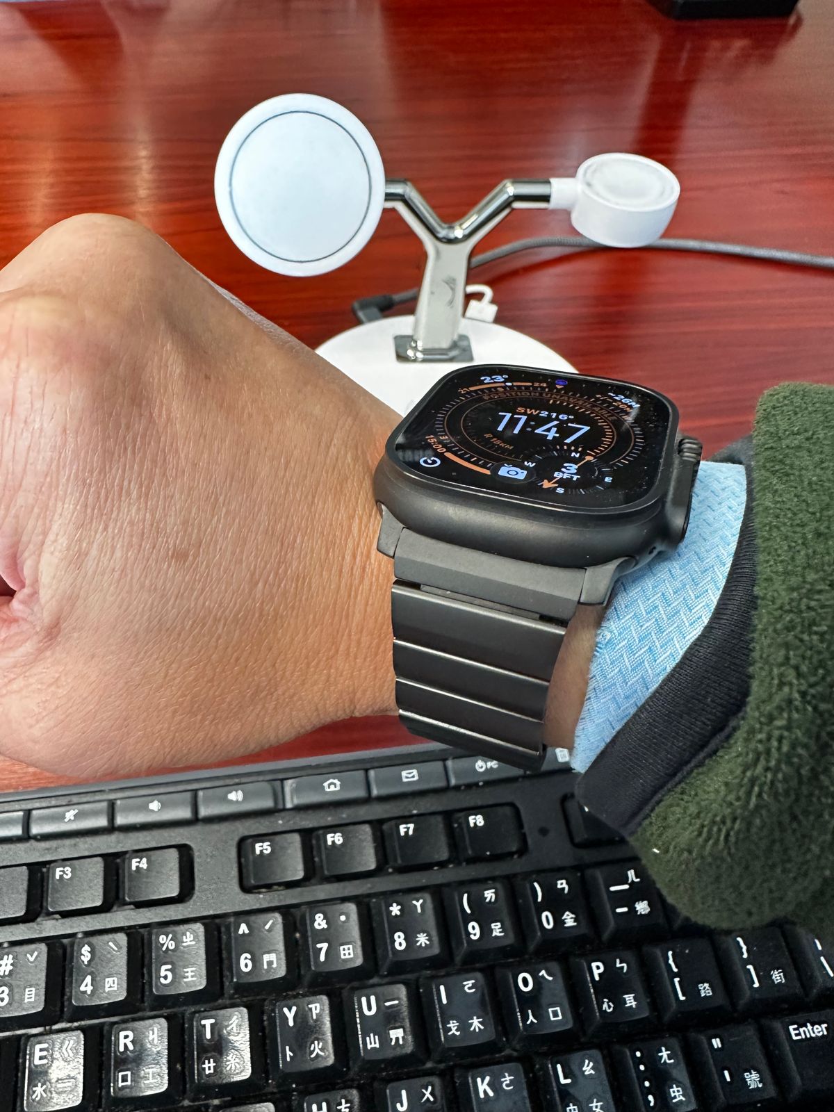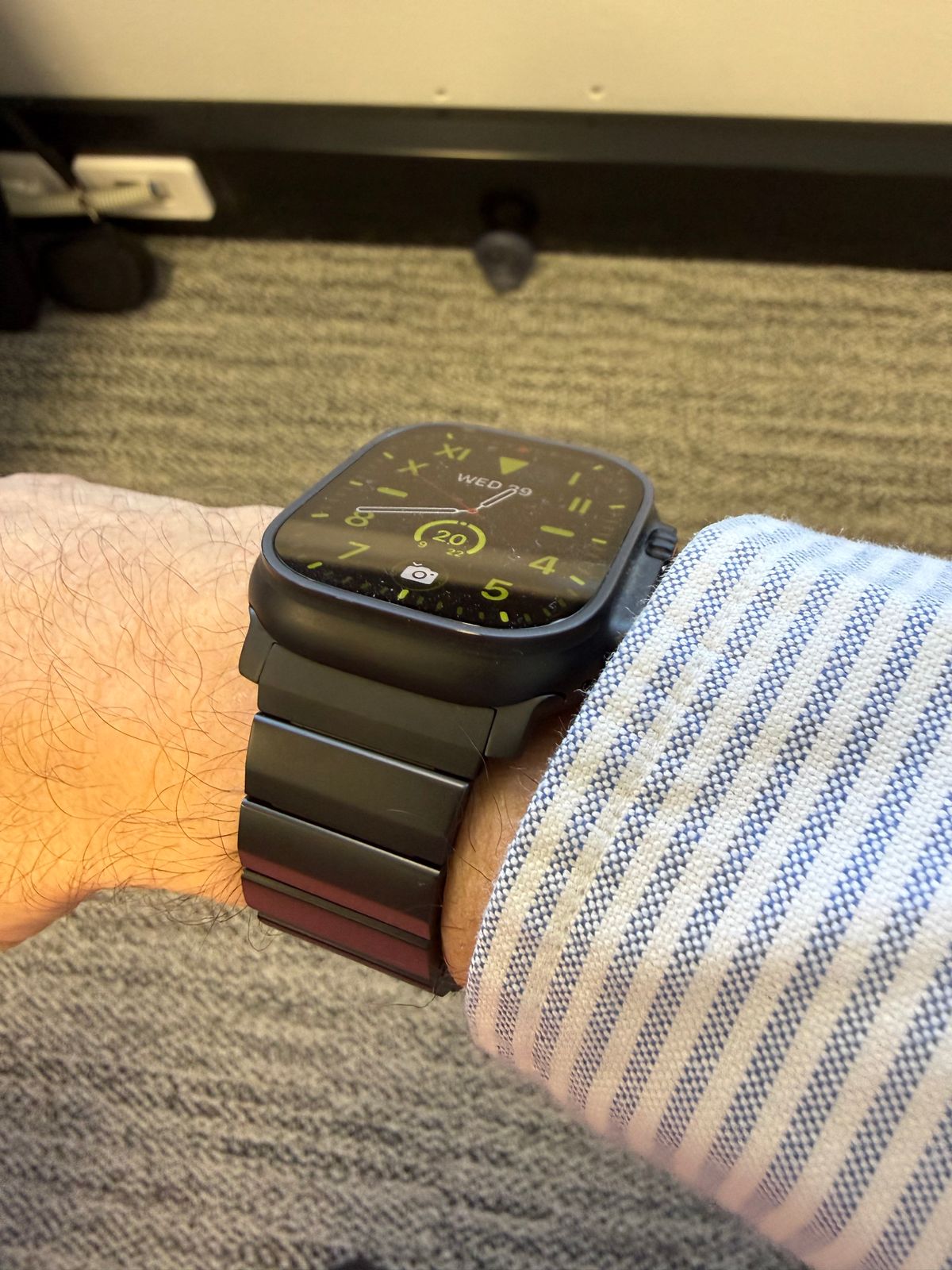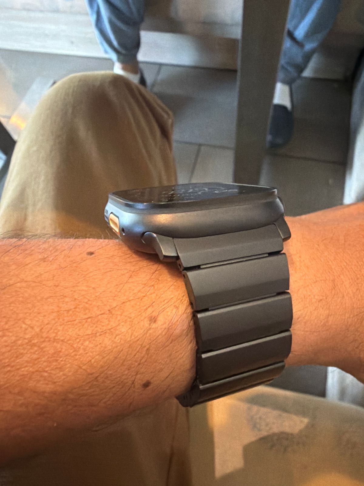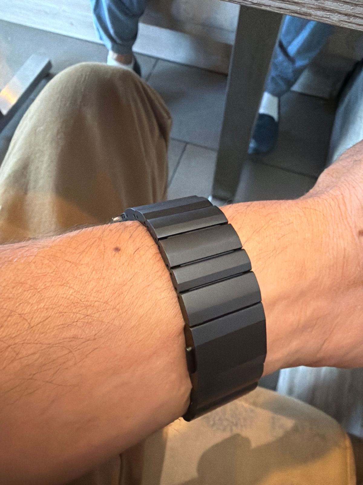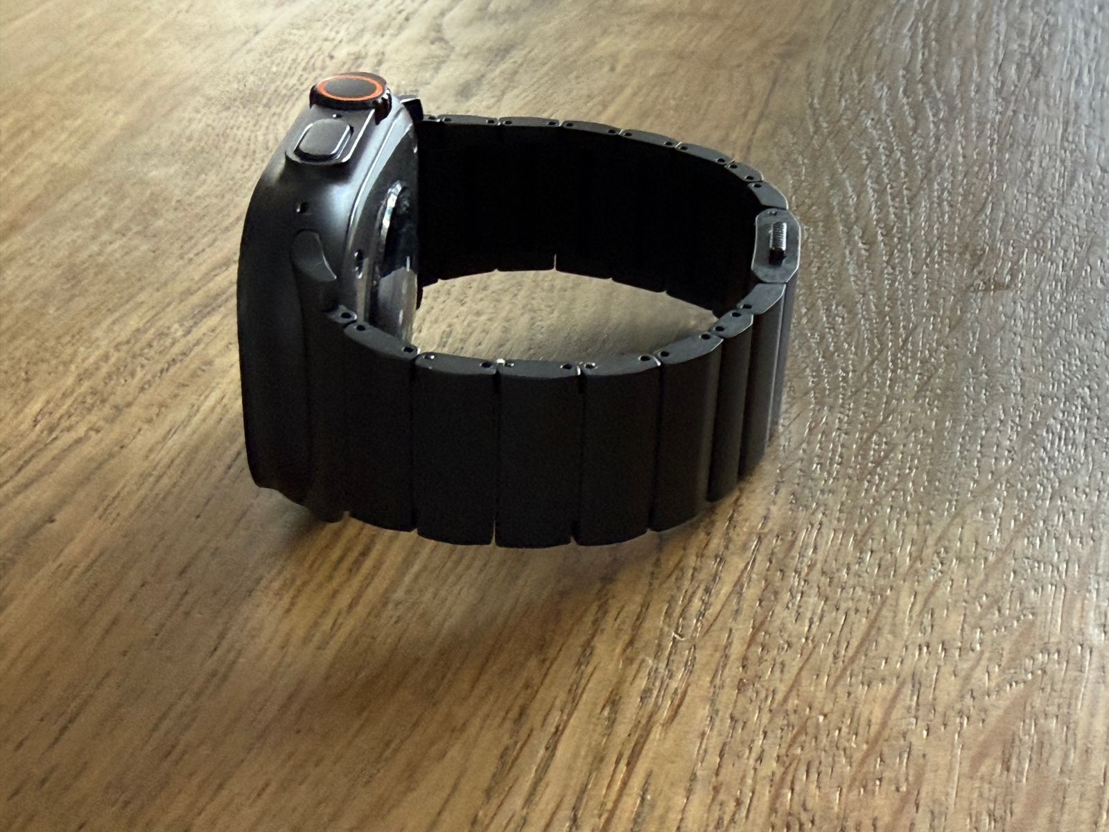 The titanium band looks and feels great, Perfect match with the black Apple Watch Ultra 3. Although I really love it I returned it. I have a small wrist (16.5cm) and can’t get the correct fit. If I remove 7 links it’s too loose, if I remove 8 links it’s too small. You cannot remove the small links on the band.